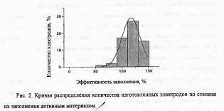 Изготовленное оборудование (линия никелирования волокновых основ, установка приготовления пасты активного материала, устройство для заполнения волокновых основ) по результатам опытно-промышленной проверки позволяет выйти на крупносерийный уровень производства. Созданное оборудование позволяет изготавливать электроды в широком массогабаритном диапазоне. Это делает предлагаемую технологию более мобильной и универсальной.
