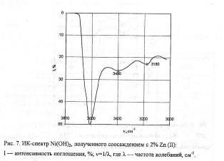 Совокупность полученных экспериментальных данных позволяет предположить следующий механизм влияния Со и Zn на характеристики ОНЭ волокновой конструкции. При введении в состав активного материала вышеназванных соединений в ходе циклирования НКА происходит образование зародышей гидроксидов Со(ОН) 2 и Zn(OH) 2, осаждающихся на поверхностных гранях кристаллов Ni(OH) 2. Скорость их образования тем выше, чем лучше растворимость изначально выбранного соединения. Далее действует механизм, описанный.