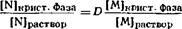 Если процесс осаждения или кристаллизации протекает так, что микрокомпонент гомогенно распределяется в кристаллической фазе макрокомпонента, т.е. если кристаллическая фаза в целом находится в равновесии с раствором, то в идеальном случае имеет силу следующее соотношение: