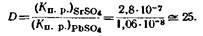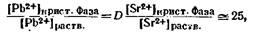 Применение вышеизложенных принципов к системе сульфат свинца – сульфат стронция приводит к выводу, что следы свинца можно выделить соосаждением с сульфатом стронция. Оба эти сульфата изоморфны и образуют смешанные кристаллы. Вычислим значение Dиз отношения произведений растворимости при 18°: