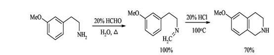 Образующиеся при взаимодействии фенилэтиламинов с альдегидами альдимины в кислой среде электрофильно циклизуются по бензольному кольцу с образованием 1,2,3,4-тетрагидроизохинолинов. Для успешного осуществления циклизации бензольное кольцо должно быть активировано к электрофильной атаке наличием электронодонорных заместителей, поскольку образующиеся при действии кислоты на имины иминиевые соли - достаточно слабые электрофилы.
