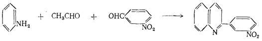 Было показано,что эта реакция применима почти для всех ароматических аминов. В качестве альдегида может быть взят любой α,β-ненасыщенные альдегид, подобный кротоновому или коричному. Общее течение реакции изображается схемой: