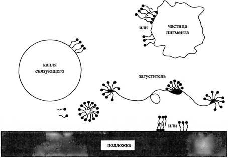 Один из путей преодоления проблем, связанных с присутствием ПАВ в конечных продуктах, — использование ПАВ, химически закрепляемых на частицах латекса. Можно использовать другой путь и проводить полимеризацию ПАВ на стадиях затвердевания и сушки. При этом ПАВ может образовывать гомополимер или сополимер с каким-либо компонентом смеси. В красках и лаках роль сореагента выполняют вяжущие компоненты.