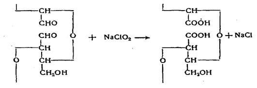 При окислении диальдегидцеллюлозы в мягких условиях получается препарат окисленной целлюлозы, у которой в элементарном звене в положениях 2 и 3 имеются вместо вторичных спиртовых групп карбоксильные группы. Получение этого препарата, названного дикарбоксилцеллюлозой, происходит при обработке диальдегидцеллюлозы бромом или хлоритом натрия. Оба реагента в определенных условиях не окисляют спиртовых групп, но окисляют альдегидные группы: