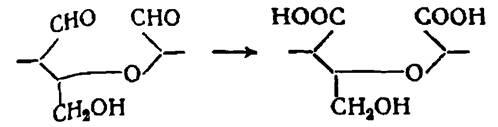При комбинированном действии окислителей может произойти дальнейшее окисление альдегидных групп, образующихся при окислении вторичных спиртовых групп до карбоксильных групп: