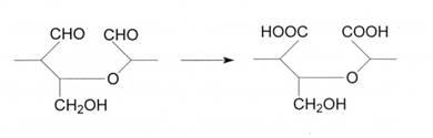 V. При комбинированном действии окислителей может произойти дальнейшее окисление альдегидных групп, образующихся при окислении вторичных спиртовых групп, до карбоксильных групп: