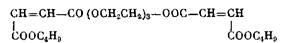 , соответствующей валентным колебаниям малеинатной группы). Независимо измеренная методом эбуллиоскопии ММ оказалась равной 496±10. Теоретическая ММ олигомера составляла 458, так что синтезированное соединение можно считать (с хорошей точностью) индивидуальным веществом — дибутиловым эфиром дималеината три-этиленгликоля с химической формулой