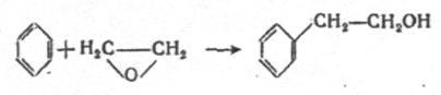 Окись этилена способна присоединять углеводороды. Так в присутствии безводного хлорида алюминия окись этилена с бензолом образует - фенилэтиловый спирт с выходом около 60 – 65% .