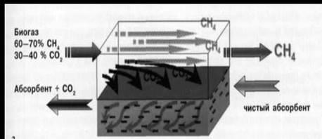 (промывка водой при избыточнм давлении, мембранное разделение, абсорбционное разделение).