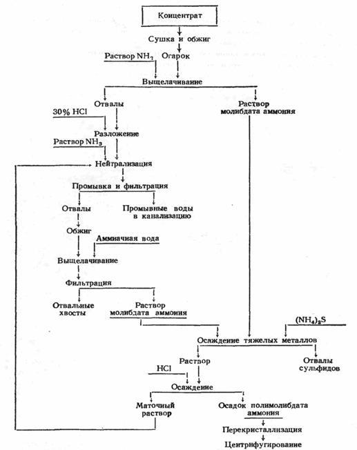 , гетерополикислот молибдена. В работе [20] К. А. Большаков детально остановился на переработке отвалов и отходов молибденового производства с целью получения товарного молибдена. Согласно работы [20] отвалы от выщелачивания раствором NH3