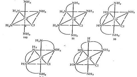Известен также ряд солей, в которых молекулы аммиака целиком или частично замещены другими нейтральными молекулами, связанными с ионом Со3+