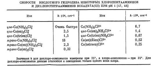 Механизм замещения реакций комплексов кобальта (III)