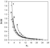 ) органических веществ изменяются нелинейно (рис. 5.5) с изменением числа углеродных атомов в молекуле, т.е. аддитивные методы для этого свойства, так же как и для критических температур, не могут быть результативными. Исходя из вида зависимостей на рис. 5.5 можно предположить, во-первых, что для прогнозирования могут использоваться аддитивно-корреляционные подходы и, во-вторых, что соотношения типа “свойство вещества - строение молекулы” для Рc