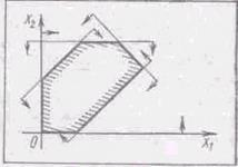 Кожна нерівність цієї системи геометрично визначає півплощину з граничною прямою (i = 1, 2,...,т). Умови невід’ємності визначають півплощини відповідно з граничними прямими . Система сумісна, тому півплощини, як опуклі множини, перетинаючись, утворюють спільну частину, що є опуклою множиною і являє собою сукупність точок, координати кожній із який є розв’язком даної системи (рис. 1.).