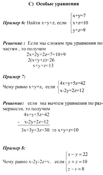 Диофант, который не имел обозначений для многих неизвестных, прилагал немало усилий для выбора неизвестного таким образом, чтобы свести решение системы к решению одного уравнения. Вот один пример из его “Арифметики".