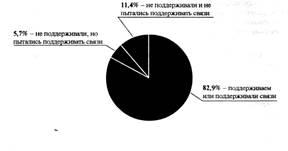 Обработка результатов исследования и соответствующий анализ показали, что в течение всего времени своего функционирования предприятия - объекты исследования поддерживали, стремились поддерживать или не поддерживали кооперационные связи с предприятиями стран бывшего СССР, в настоящее время СНГ, в соотношении, показанном в таблице 3 и на рисунке 1.