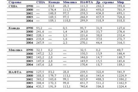 Таблица2. Динамика роста экспорта товаров стран НАФТА, 1990—2004 гг. (в млрд. $)