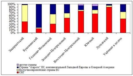 По показателям уровня участия населения в трудовых миграциях и направленности внешних трудо-миграционных контактов (по данным выборочного обследования по вопросам трудовых миграций) все регионы Украины можно объединить в 7 географически целостных районов: