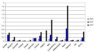 В ходе беспрецедентное расширение Европейского Союза: на 10 стран ( EU 10) — в мае 2004 г. , и еще на 2 страны (EU 2) — в январе 2007 г., (т.н. "балканское расширение", когда в ЕС вступили Болгария и Румыния) —не только значительно увеличилась численность жителей единого европейского пространства, но и значительно упростилась процедура въезда в страны "Старой Европы", ввиду чего старые страны-члены опасались значительных пертурбаций на рынке труда, появились страхи перед т.н. "польским сантехником Николаем" и "словенской сиделкой Теей". Усугублялись эти страхи и тем, что новые страны еще проходили (да и сейчас проходят) период социально-экономической трансформации, то есть масштабы безработицы в этих странах были, по европейским меркам, велики,