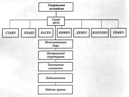 Организационно в ИСО входят руководящие и рабочие органы (рис.1). Руководящие органы: Генеральная ассамблея (высший орган), Совет, Техническое руководящее бюро. Рабочие органы - технические комитеты (ТК), подкомитеты (ПК), технические консультативные группы (ТКГ).