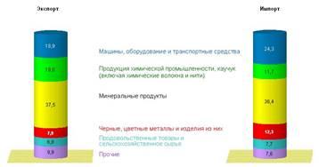 Товарная структура экспорта и импорта представлена на рис 2.1