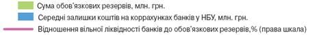 Примітка. Вільна ліквідність — різниця між залишком коштів на коррахунках банків у НБУ та обсягом сформованих банками обов'язкових резервних вимог.
