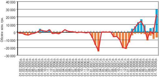 Із жовтня 2008 року на грошово-кредитному ринку спостерігалося напруження щодо ліквідності банківської системи, зумовлене впливом світової фінансової кризи та наслідками недобросовісної конкуренції — штучно спровокованого посилення недовіри до фінансового стану деяких банків [6]. Аби стабілізувати ситуацію, Національний банк України запровадив додаткові заходи щодо діяльності банків, відображені в постанові Правління НБУ від 11.10.2008 р. № 319 [13]. Основні з них були спрямовані на розширення можливостей банків щодо підтримки ліквідності через механізми рефінансування; недопущення відпливу коштів клієнтів з банківської системи; безперебійне здійснення платежів; тимчасове лімітування відхилень між курсами купівлі та продажу готівкової іноземної валюти; пом’якшення умов формування обов’язкових резервних вимог; обмеження попиту банківських установ на іноземну валюту; обмеження обсягів кредитування в іноземній валюті позичальників, які не мають джерел валютної виручки тощо [13]. Це дало змогу стабілізувати ситуацію, ознаками чого стали наприкінці жовтня 2008 року стійка висхідна динаміка обсягів строкових депозитів фізичних осіб та припинення тенденції до зменшення рівня ліквідності банківської системи. Про це свідчила стабілізація обсягу щоденних залишків коштів на кореспондентських рахунках банків у НБУ на рівні 14—16 млрд. грн. в останню декаду жовтня 2008 року [6; 1].