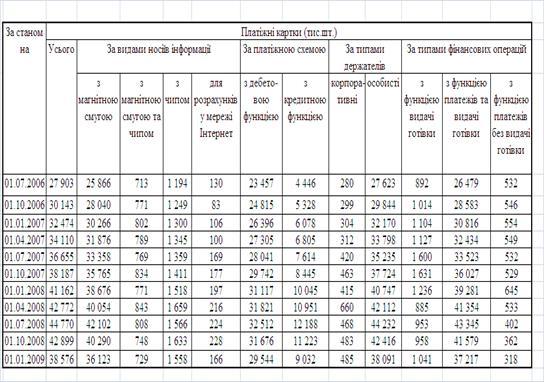 Як показує аналіз функціональної структури емітованих комерційними банками платіжних карток, основними картками в Україні є: