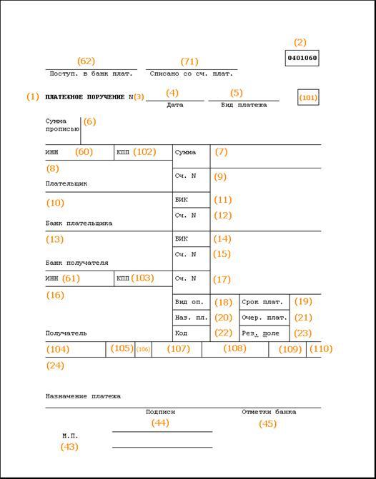 2. Указания ЦБ РФ № 529 от 14.10.1997 г. «О формате платежного поручения и порядке его заполнения» (в ред. Указания ЦБРФ от 02.12.1999 № 691-У);