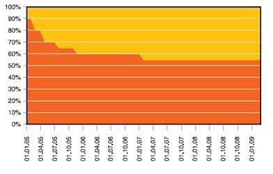 Рис. 2.1.2 Состав бивалютной корзины, 2005 - 2009 годы (источник: составлено по годовым отчетам Банка России за 2005 - 2008 гг.)