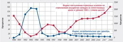 В Республике Беларусь за 2008 г. удельный вес накопительных видов составил 5%, в то время как на начало 90-х годов он в полной мере соответствовал мировым показателям.