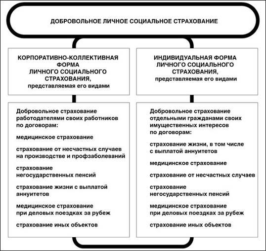 корпоративно-коллективной формы личного социального страхования;
