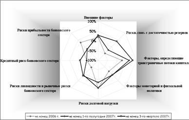 В целом, сочетание внутренних и внешних факторов привело к росту отдельных групп риска для финансовой стабильности в Казахстане в 2007 году. Карта оценки рисков для финансовой стабильности представлена в приложении 1