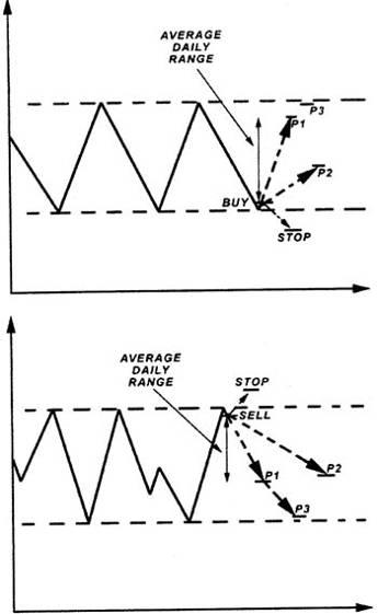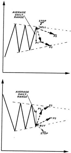 Статистически перед разворотом должен быть некоторый период рыночного колебания, которое трейдер может использовать или для закрытия прибыльной позиции, или для того, чтобы спланировать открытие новой позиции в противоположном направлении. Однако все это правильно и будет работать только тогда, когда рынок еще не выбрал направление главной внутридневной тенденции и не закончил формирование ежедневного торгового диапазона. Рынку также требуется некоторое время, чтобы полностью развернуться и начать движение к противоположной стороне предварительно, установленного диапазона – особенно, если нет большого количества времени до конца торгового дня, и средняя амплитуда еще не пройдена. Поэтому, при открытии новой внутридневной краткосрочной позиции, я считаю полезными следующие два правила: