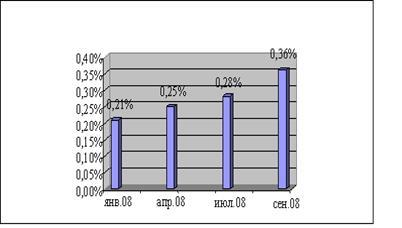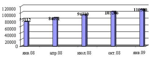 Снижение в IV квартале 2008 г. курса рубля к доллару США и евро повысило склонность населения к сбережениям в иностранной валюте: в общем объеме вкладов удельный вес валютной составляющей вырос с 12,9% на 01.01.2008 до 26,7% на 01.01.2009 (приложение 1).