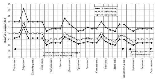 Таблиця Ж.2 - ЗАТ "НОВАТОР"(Україна04073,Київ-73, вул.Вербова,8-а) пропонує продукцію з гранітів українських родовищ, зроблену на устаткуванні фірм: "Pedrini", "Barsanti" (Італія) Плитка лицювальна розміром: 300x300, 300x600, 400x400, 400x600, 500x500, 600x600мм