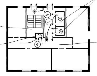 Аэродинамические характеристики вентиляционных систем и избыточные статические давления в защищаемых объемах здания определяют при помощи комбинированного приемника давления и дифференциального манометра. Избыточные статические давления в защищаемых объемах измеряются по отношению к примыкающему помещению (холлу, коридору и другим помещениям), при этом приемники статического давления в этих помещениях размещаются на одной высоте и располагаются на расстоянии не менее 0,5 метра от ограждающих конструкций.