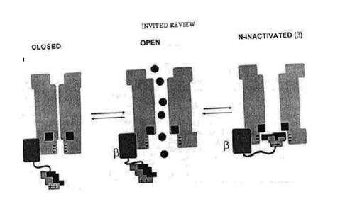 каналів сповільнює переміщення воротних зарядів під час припинення деполяризаційних пульсів. Ці результати змушують думати про можливість конформаційних перебудов, а не просто взаємодію кульки з рецепторами в процесах активації та інактивації.