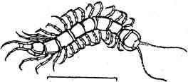 Мы увидим тогда червеобразное коричневого цвета тело, состоящее из головы и ряда члеников; на голове находятся длинные, утончающиеся к концу усики (органы чувств); несколько выдаются за передний край головы так называемые ногочелюсти многоножки, это орган защиты и нападения; ими она схватывает добычу и выпускает в нее капельку ядовитой жидкости; челюсти имеют серпообразную форму, и на конце их острия находится маленькое отверстие, из которого вытекает ядовитый секрет желез, помещающихся в ногочелюстях.