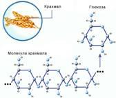 Полисахарид крахмал, содержащийся в злаках, картофеле и других продуктах, расщепляется ферментами пищеварительного тракта до мономеров - глюкозы.