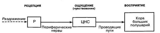 Таким образом, чувствование, а вместе с ним и восприятие ощущения, представляют собой сложные многоэтапные процессы, при реализации которых имеет место функциональное объединение (интеграция) различных структур мозга. На уровне рецепторов происходит опознание раздражений (рецепция), поступающих из внешней среды и внутренней среды организма. По мере проведения сенсорной информации в нервной системе через ряд промежуточных ядерных центров идет ее анализ и перераспределение между различными отделами мозга, т. е. осуществляется само чувствование. Однако ощущение как форма субъективного переживания воспринимаемой сенсорной информации возникает лишь на уровне коры мозга.