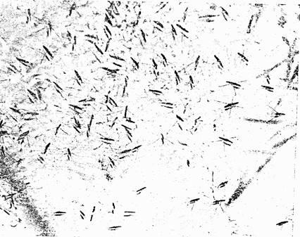 Можно привести также пример образования скопления водомерок (HydrometraSp.), которые собрались в одно место (затишное от ветра) вблизи выступа берега на одном из озер Киевской области. Как видно на рисунке, водомерки то держатся, не мешая друг другу, довольно стройными рядами, то, будучи напуганными, собираются в беспорядочное скопление. По окончании ветра они рассеиваются вдоль береговой липни.