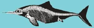 Мезозавр — Скелет іхтіозавра з обрисами тіла