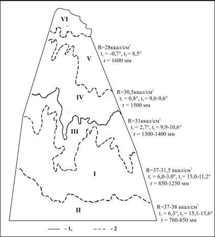 Б – климатогенное поле однородности геоботаниеского пояса.