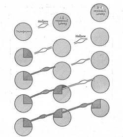 Тенденція нервових волокон рости уздовж твердих предметів має велике значення в процесі регенерації нервів. При перерізанні нерва дегенерує та його частина, що відділена від тіла клітки, а частина, з'єднана з клітиною, регенерує. При регенерації волокно росте, повторюючи хід частини нерва, що дегенерувала (рис. 5).
