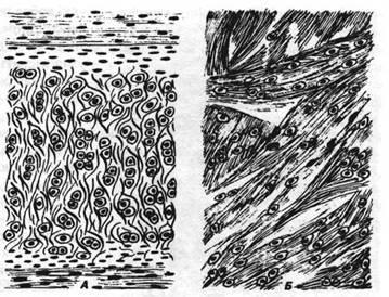 А — еластичний хрящ; Б — волокнистий хрящ