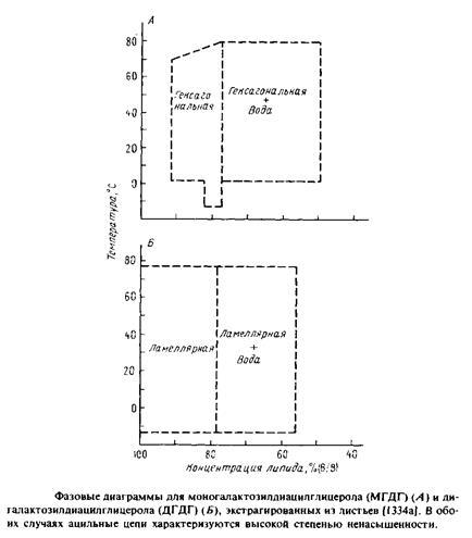 сагональной фазе Ни. В качестве примера можно упомянуть ненасыщенные фосфатидилэтаноламины, а также такой гликолипид, как моногалактозилдиацилглицерол. Причины такого поведения и его возможная биологическая значимость обсуждаются в следующих разделах.