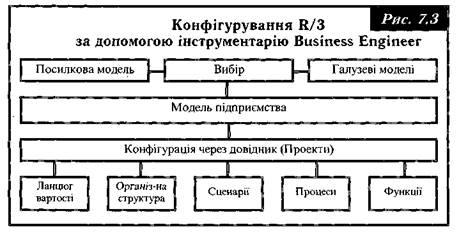 Завдяки відкритому стандартному інтерфейсу користувача Business Engineer партнери R/3 і консультанти можуть створювати попередньо сконфігуровані галузеві рішення на базі господарських сценаріїв R/3 (рис. 5). Крім того, відкриті інтерфейси дають клієнтам R/3 можливість розробляти власні шаблони для впровадження системи R/3.