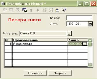 |Читатель = Документ.ПотеряКниги.Читатель;
