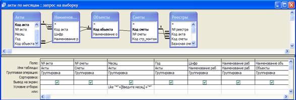 Рисунок 3.8 - Построение запроса «Акты по месяцам»